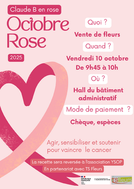 Claude B en rose - Vente de fleurs le vendredi 10 octobre au profit de l'association YSOP