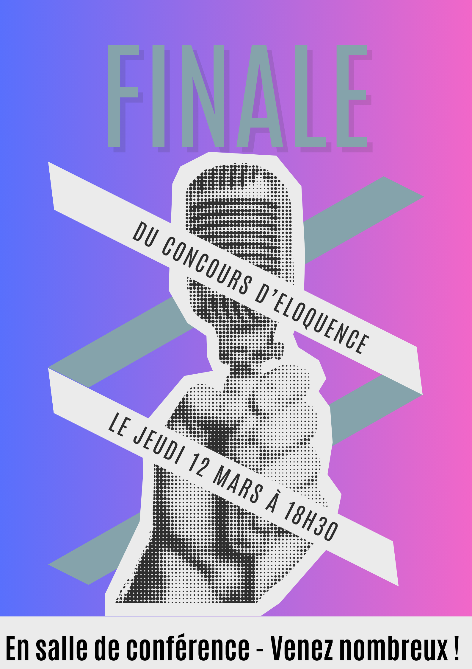 La finale du concours d'éloquence aura lieu le jeudi 12 mars à 18h30, salle de Conférences. Entrée libre.